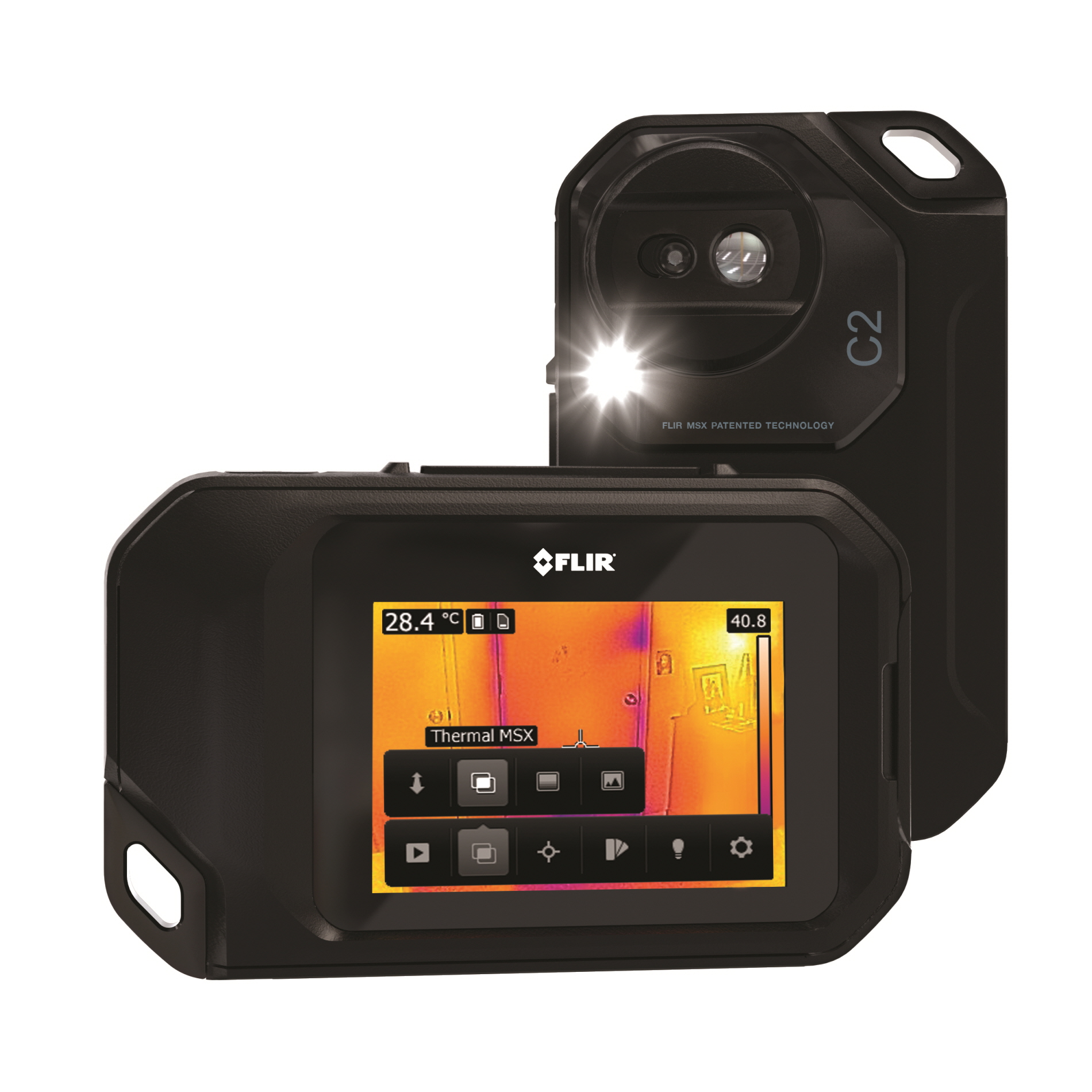 ▶ C2는 세계 최초의 초소형 다기능 열화상 카메라로 건물에 사용할 수 있도록 특수하게 설계되었습니다. 휴대가 가능하기 때문에 언제 어디서나 배관 막힘, HVAC 문제 등 거의 모든 문제점을 찾아낼 수 있습니다.